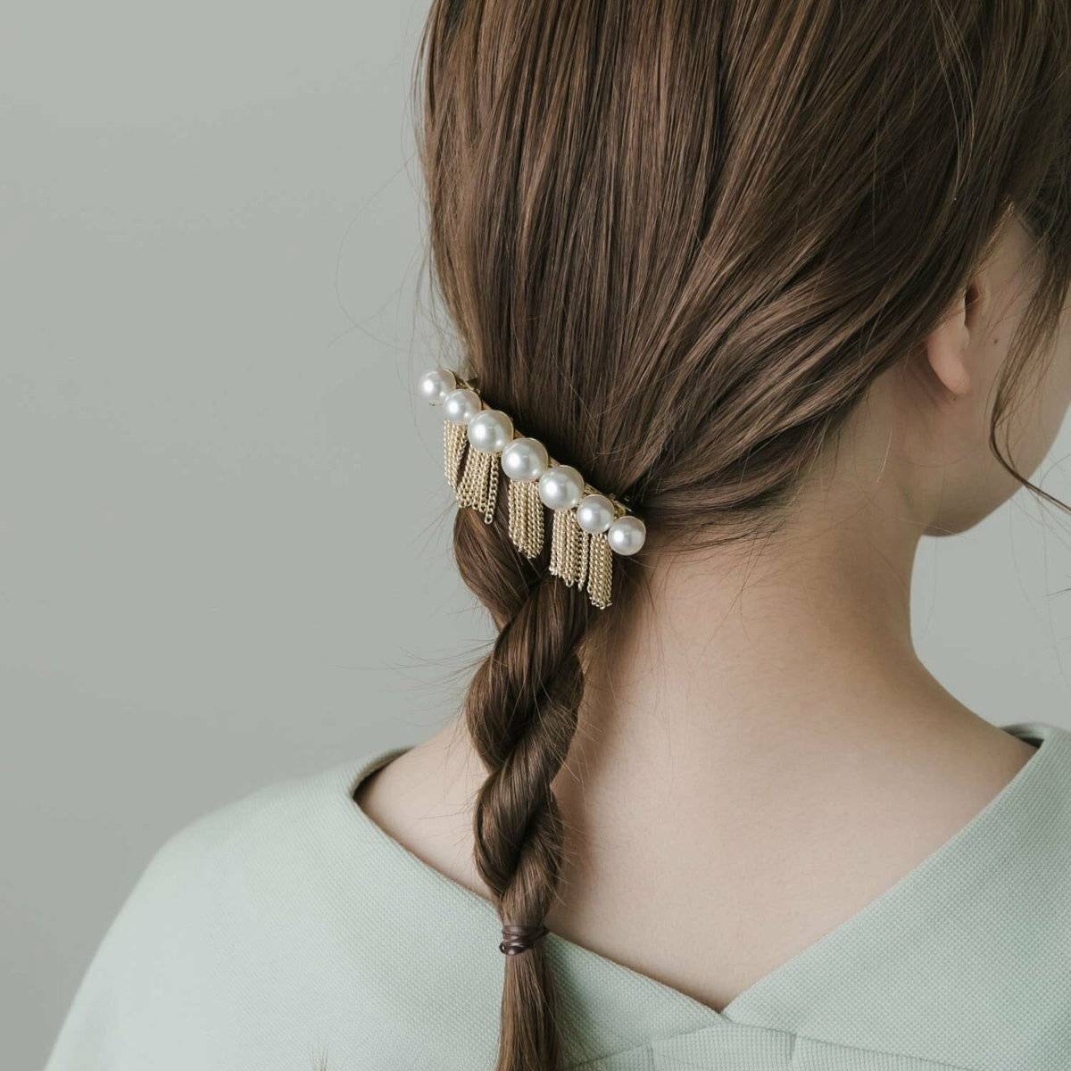 よりエレガントに魅せたいシーンであれば、パールのバレッタを添えてあげるといいですよ。