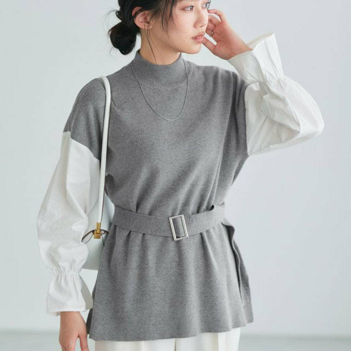 大きい胸が目立たない!ニットコーデのコツ④ゆったりしたシルエットを選ぶときはウエストマークが◎