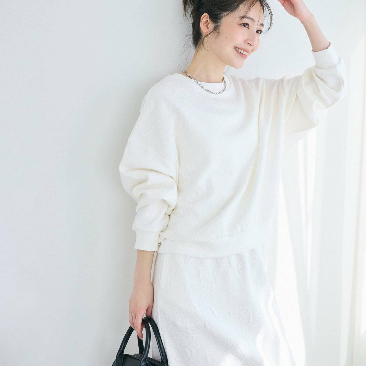 春は、柔らかい印象を感じさせるオールホワイトコーデへ。