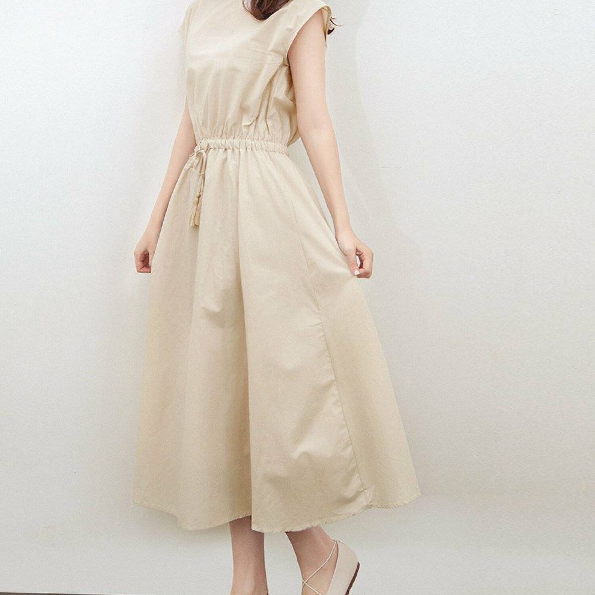 「ワンピース×バレエシューズ」の春コーデ④スリットワンピースと合わせる
