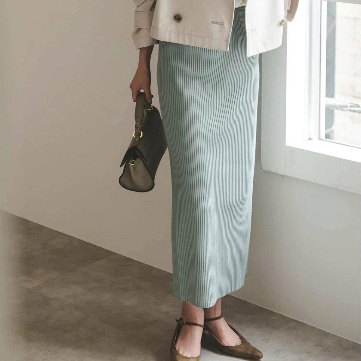 最後にご紹介するニットスカートも、今春のトレンドアイテムですが、ぽっこりお腹を隠したいのであれば、NGアイテムであることを認識しておきましょう。