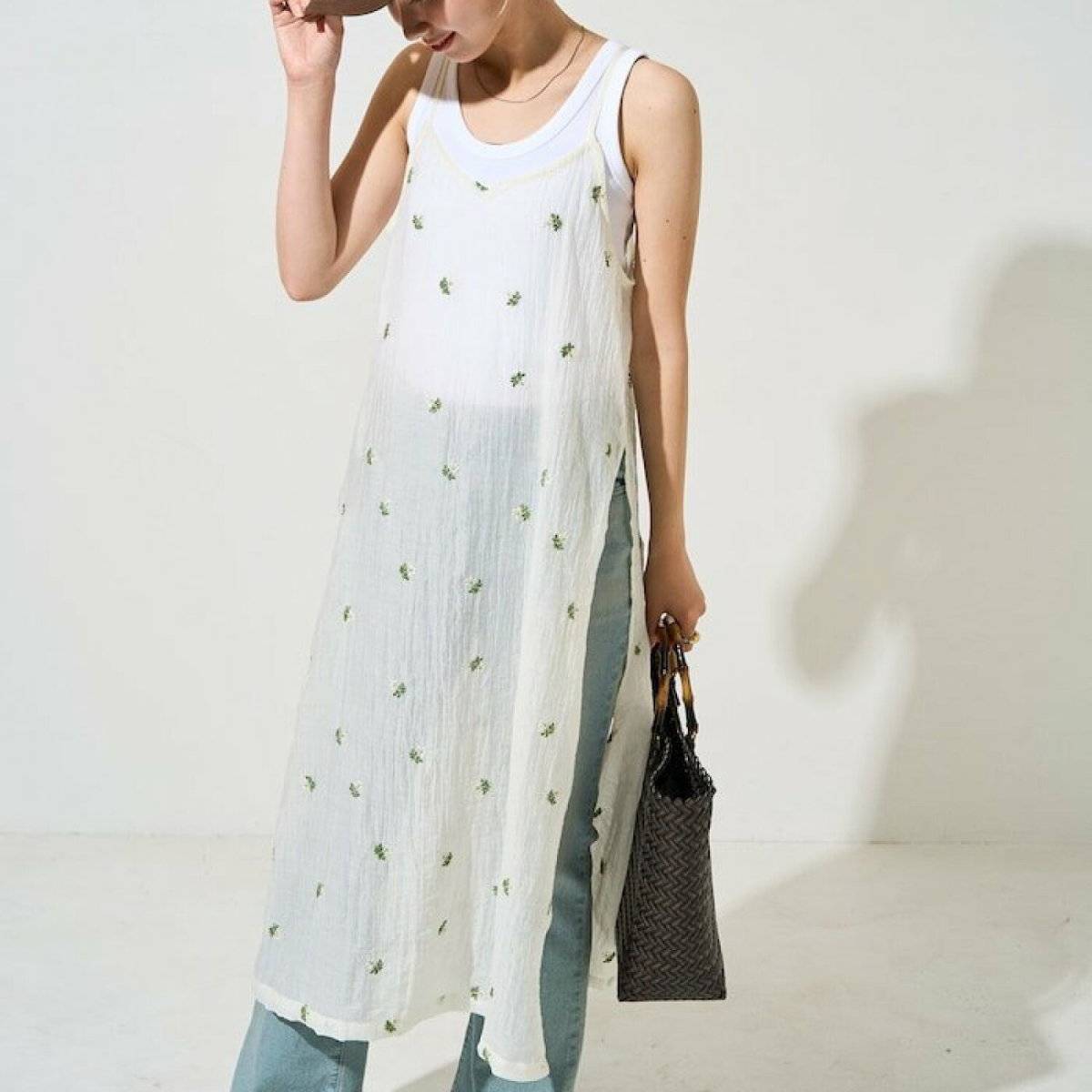 「キャップ×ワンピース」の初夏コーデ⑤シアーワンピースで爽やかさアップ♡