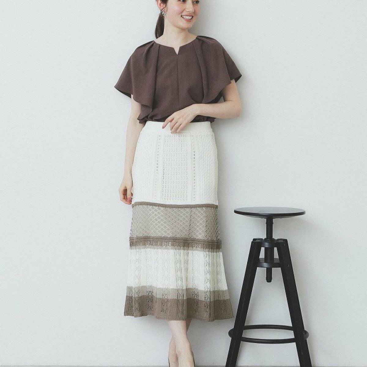 洋梨体型さんにNG!初夏のスカートコーデ④透かし編みのニットスカート