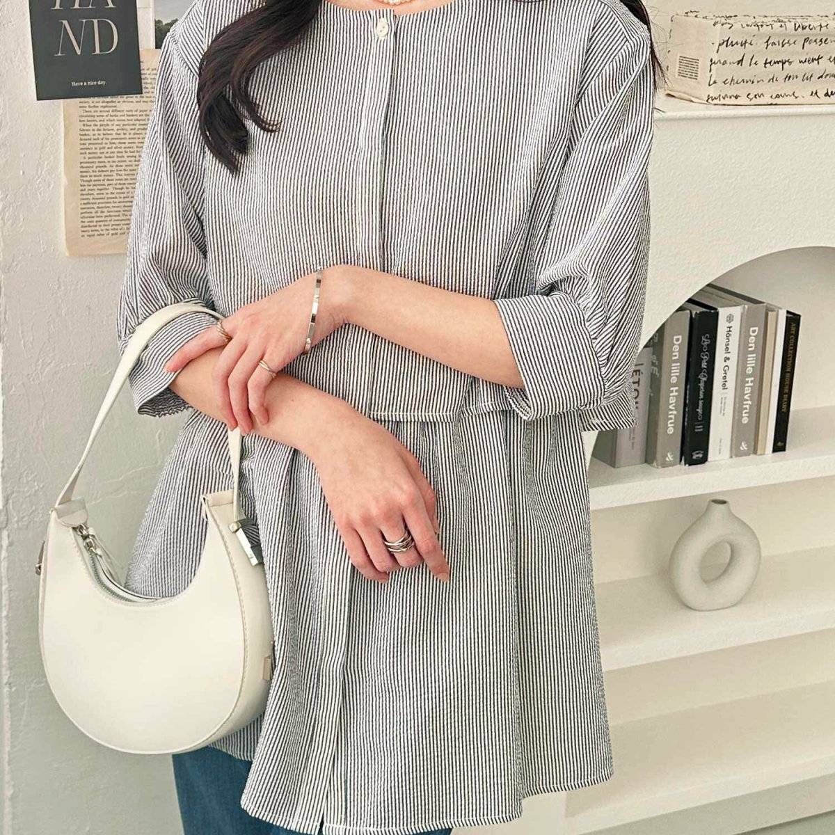 最後にご紹介するのは、お尻を隠すときの定番ともいえるシャツチュニック×デニムの夏コーデです。