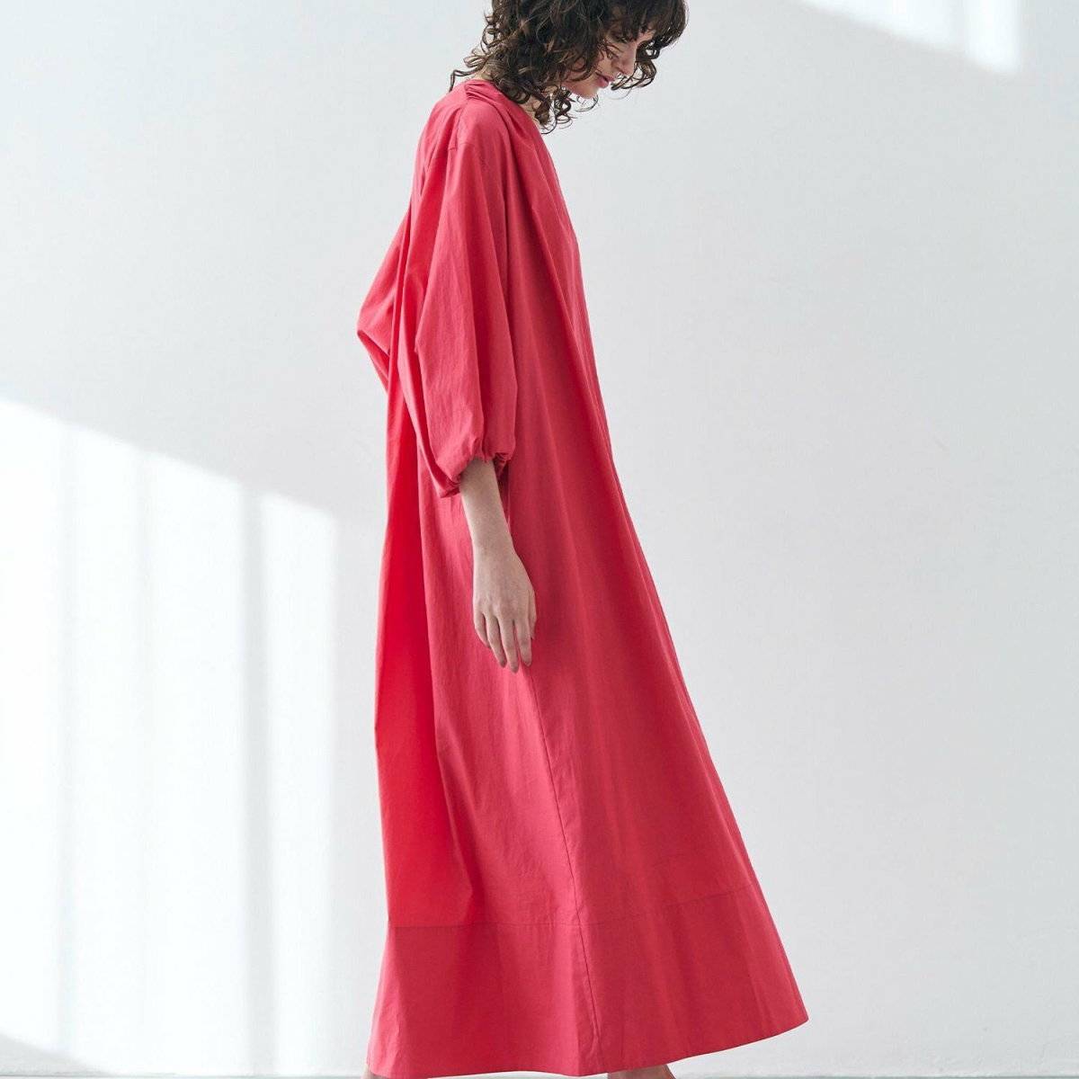 身長150〜154cmの人にNGなワンピースコーデ⑤鮮やかカラー×ボリュームシルエット