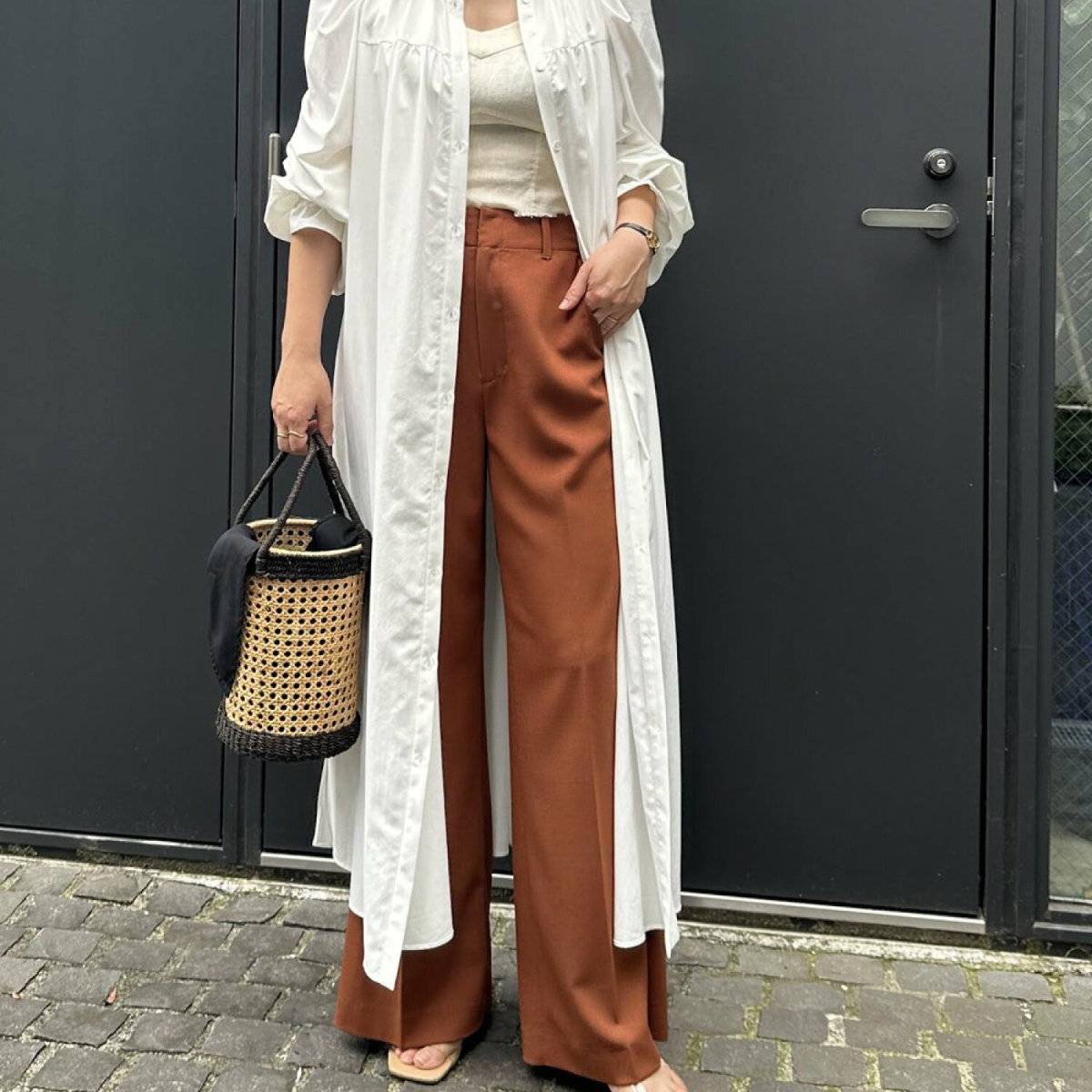 夏トレンドのロングシャツワンピースのレイヤードコーデの際は、十分注意して着こなしたいですね。