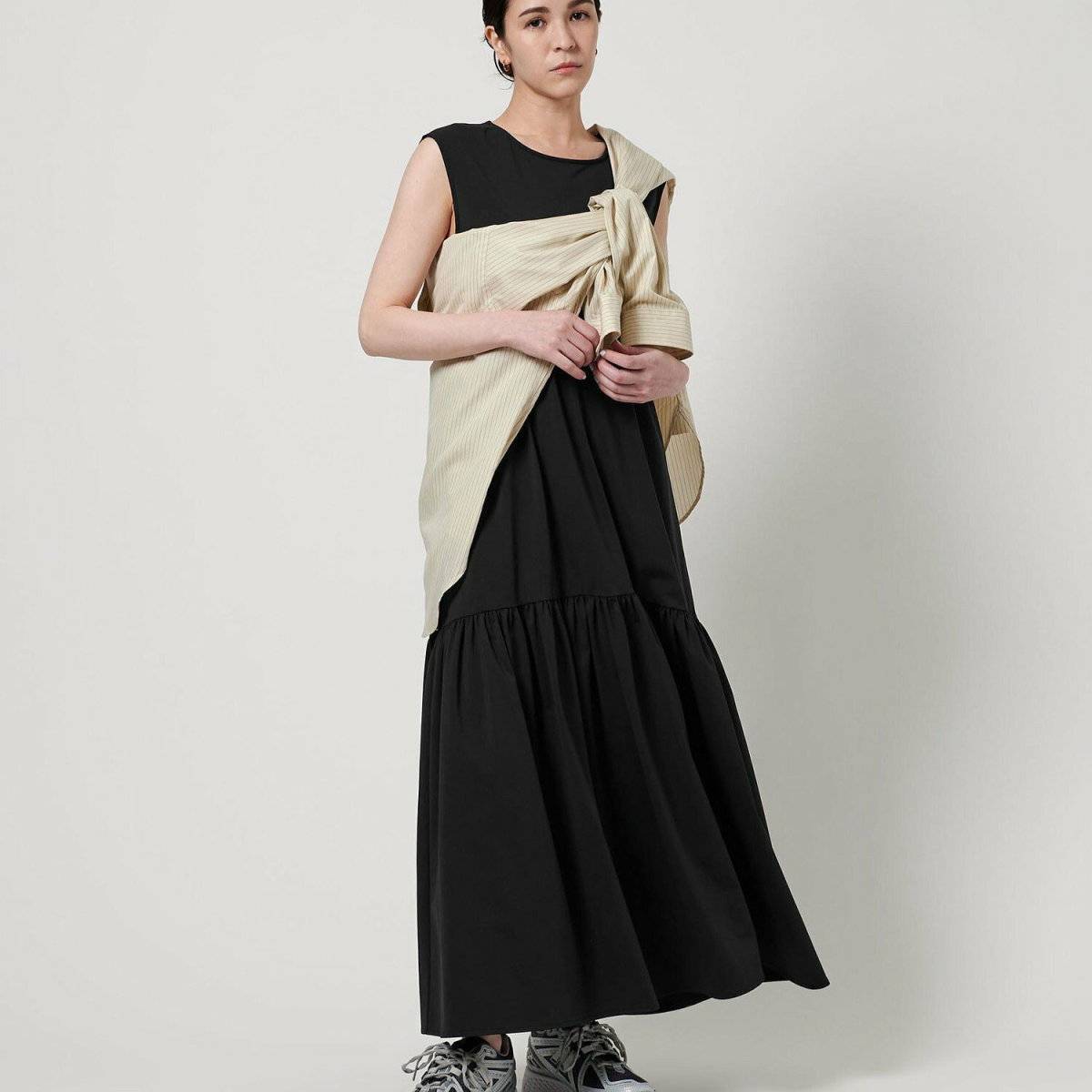 最後にご紹介するのは、着回し力に優れているブラックのノースリーブワンピースを使った夏コーデです♪