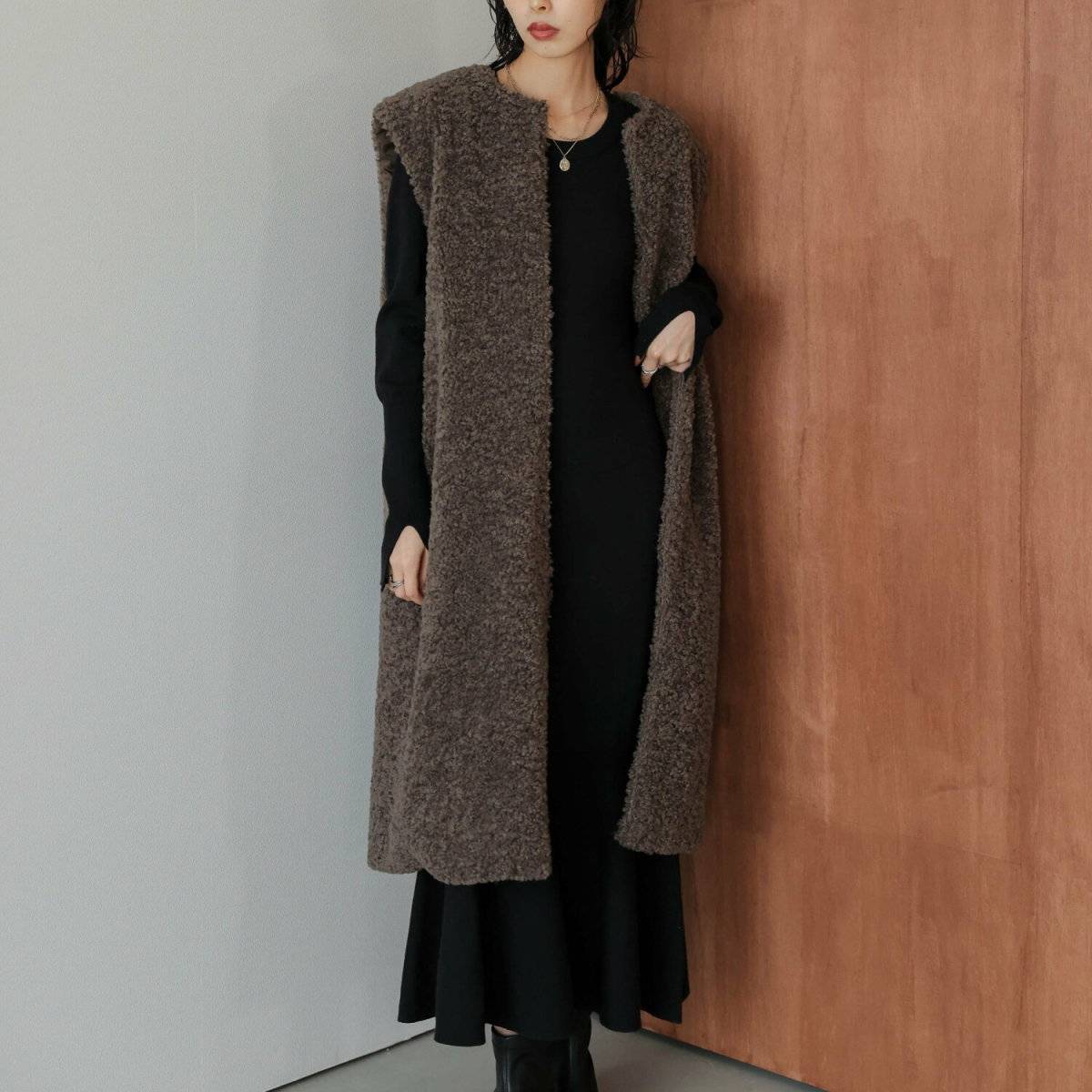 ボアロングジレ×ニットワンピース