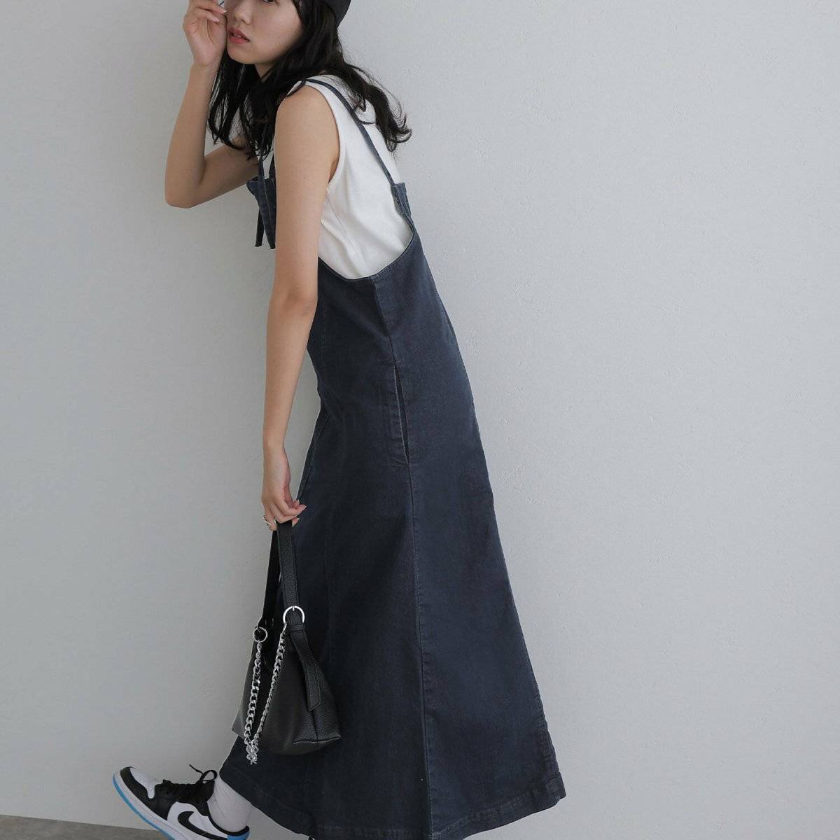 顔タイプクールさんがジャンパースカートを選ぶときには、Vネック×ストレートシルエットの直線的なデザインがおすすめです。