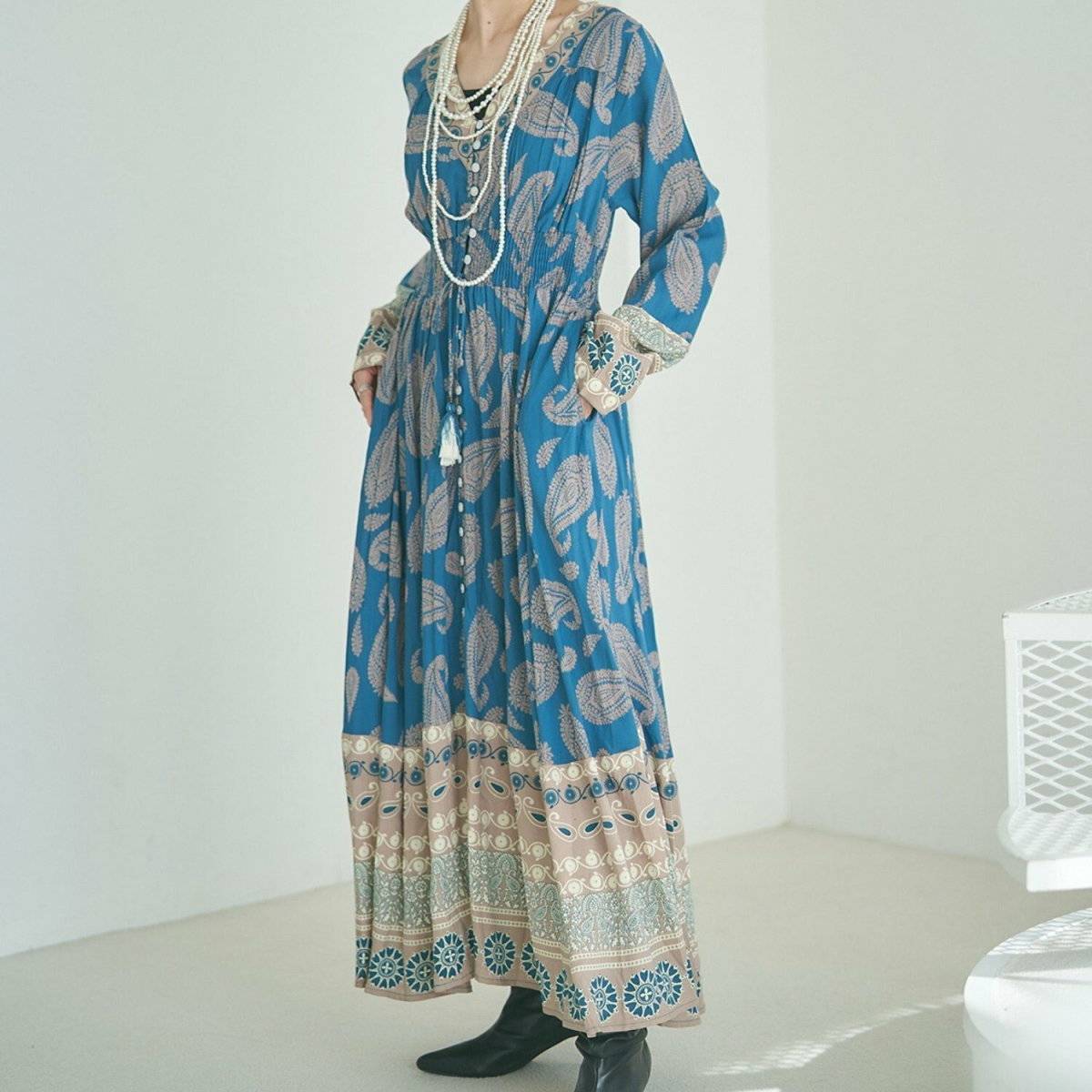 他の顔タイプと違い、柄物アイテムが得意な顔タイプフェミニンさんは、華やかなペイズリー柄のワンピースも良く似合います♡