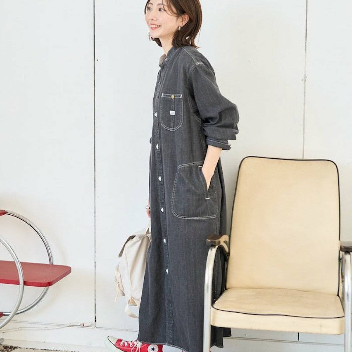 他にも、顔タイプクールカジュアルさんに、秋に挑戦してみてもらいたいのが、デニム素材のシャツワンピースです!
