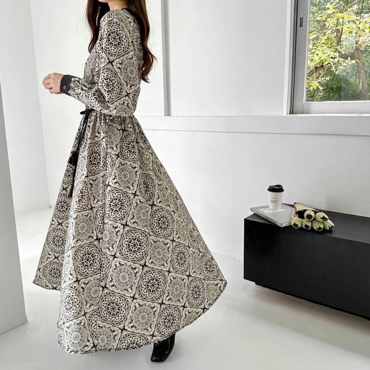 華やかな柄がよく似合う顔タイプエレガントさんに、秋におすすめしたいのがペイズリー柄のワンピース♡