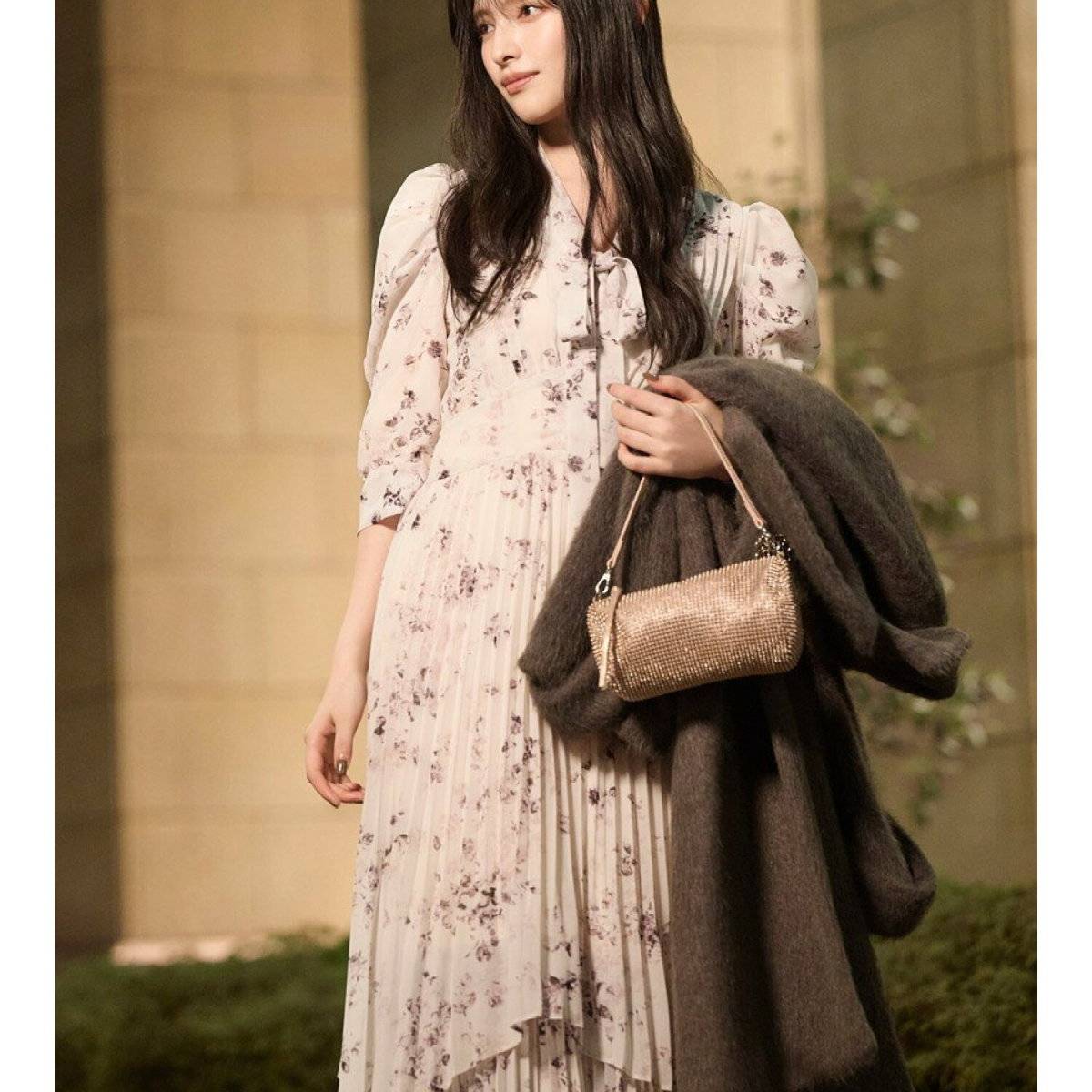 ③シックな花柄ワンピース