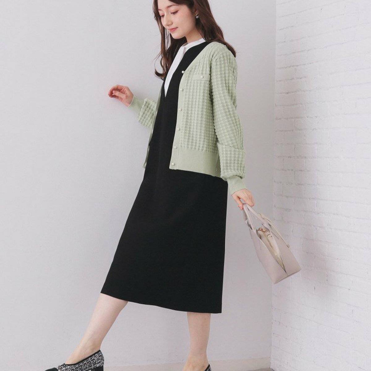 色黒さんが冬にブラックのワンピースを着こなすのであれば、カーディガンやバッグなどで差し色をプラスするとおしゃれです♡