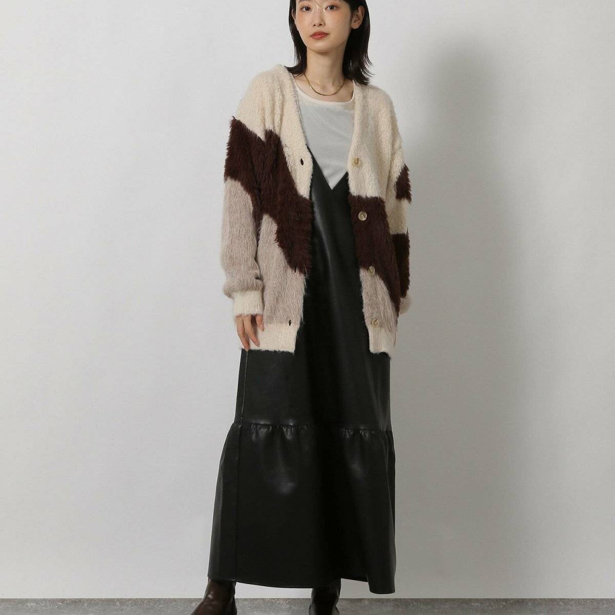 そこでおすすめしたいのが、Iラインシルエットを意識したブラウン×ホワイトの色合わせ♪