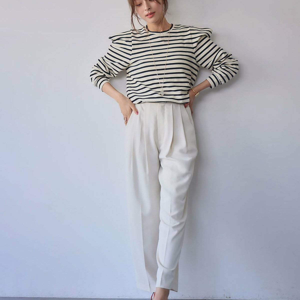 センタープレスのパンツにインして着こなせば、バランス良く見えますよ♡