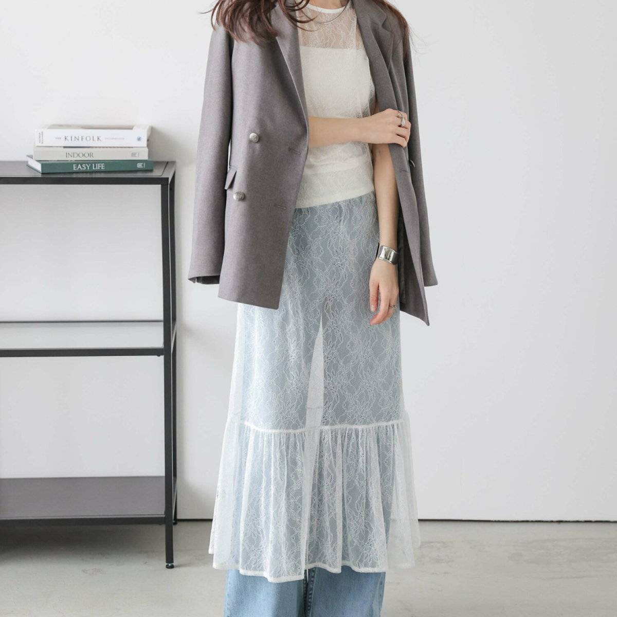 シアー素材のレースパンツは、春らしく軽やかに見えるのが魅力的♡