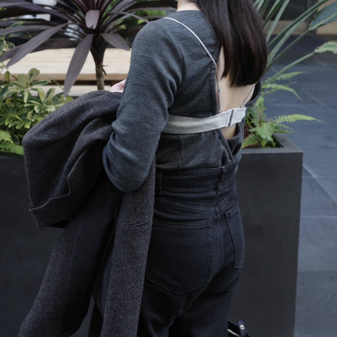 肌見せと構築的デザインのコントラストが、秋冬の装いにモードな深みを添える、センスの良い大人の着こなしです💫