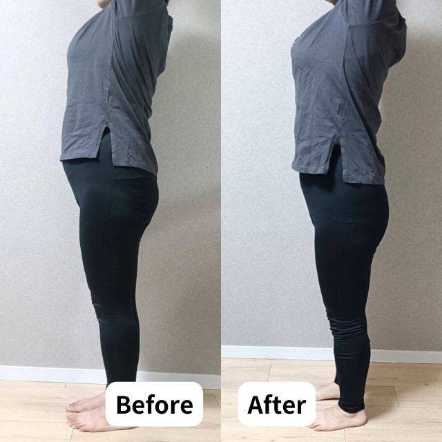 運動は、通勤のためにバスを使っていたのを、毎日往復1時間歩く方法に変えました。また、お腹やお尻が気になっていたためヒップリフトや腹筋を実施。ラスト1週間は、フォームローラーで手足をほぐしました」
