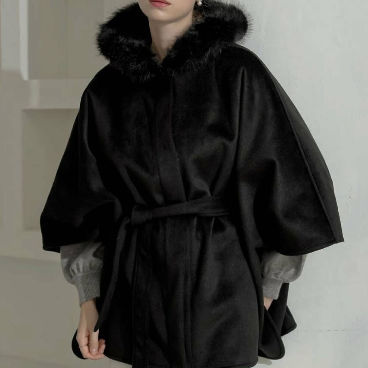 ふわっとしたシルエットのポンチョタイプのアウターは、自然に体型カバーできるところが魅力♡