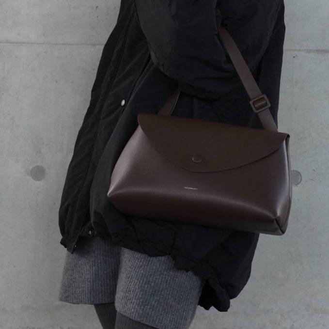 しなやかなレザー風素材と、無駄を削ぎ落としたフラップフォルムが、どんなスタイルにも都会的な表情を添えます✨