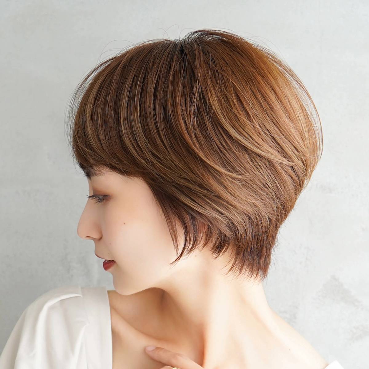 【2025年12月】老け顔さん向けショート▶暖色カラーの前下がりショート