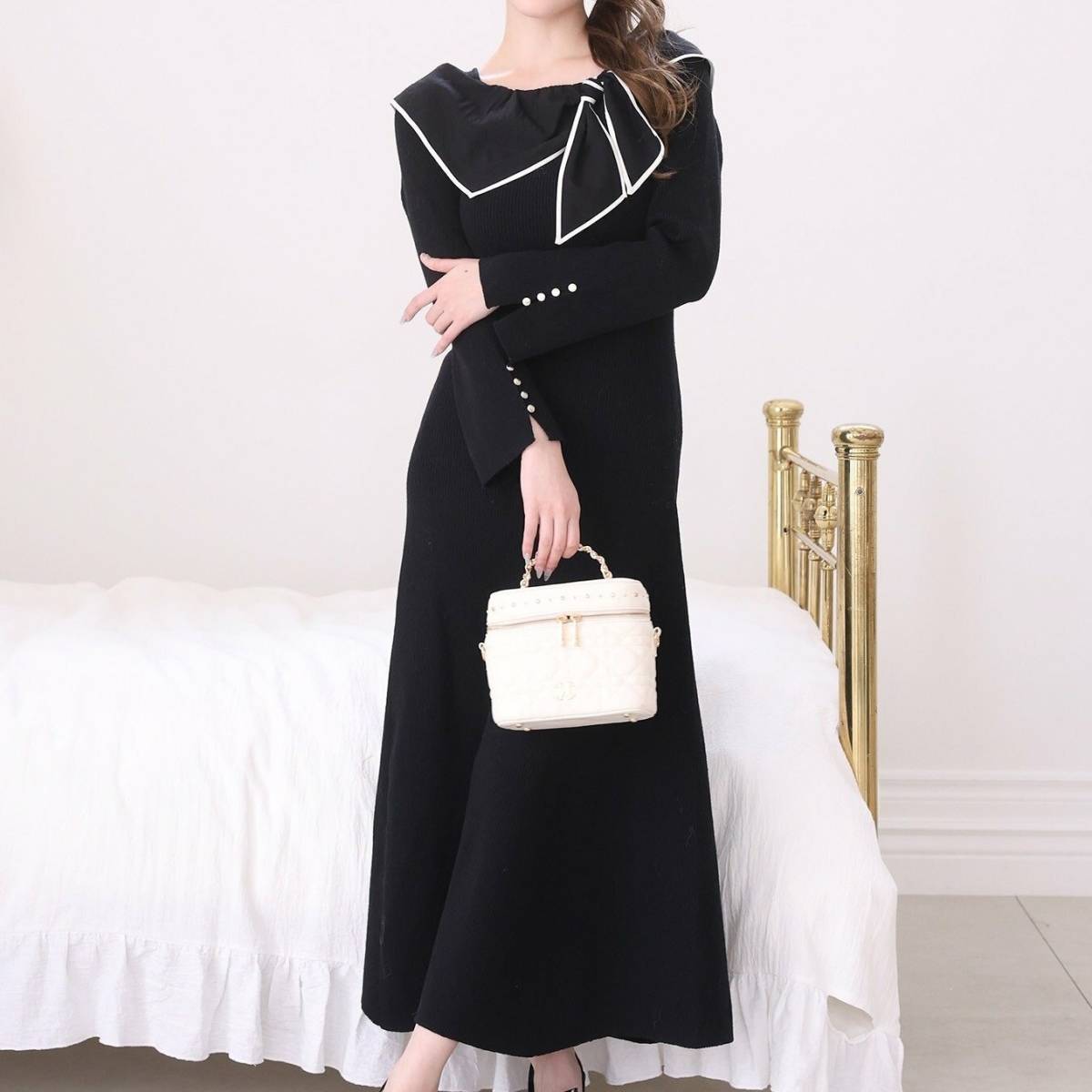 リボンデザインが大人可愛い&華やかな印象のニットワンピース。