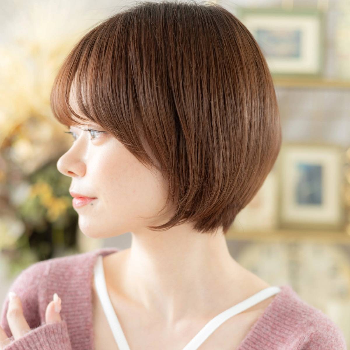 丸みのあるシルエットのショートヘアは、フェミニン見えするので、ボーイッシュにならないショートにしたい方に向いています♡