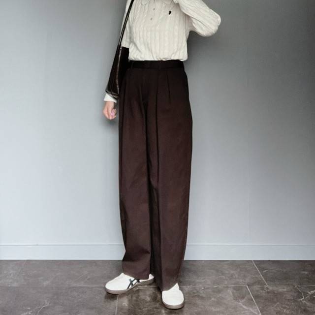 合わせやすさを意識して濃色アイテムばかりを選んでいるなら、インナーのハイネックニットと足元のスニーカーで明るさを取り入れてみて!