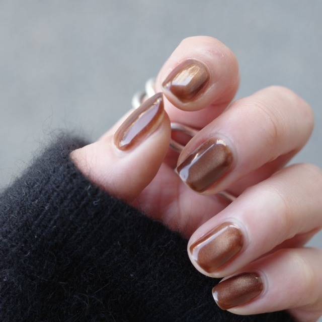 深みのあるブラウンに、光を操るマグネットのきらめきを閉じ込めたブラウンマグネットネイル🤎