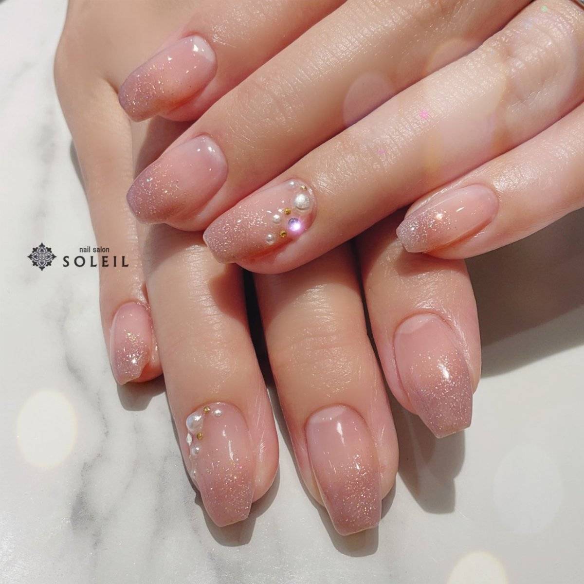 【冬編】おすすめのヌーディーピンクネイル▶︎ラメ入りのグラデーションネイル