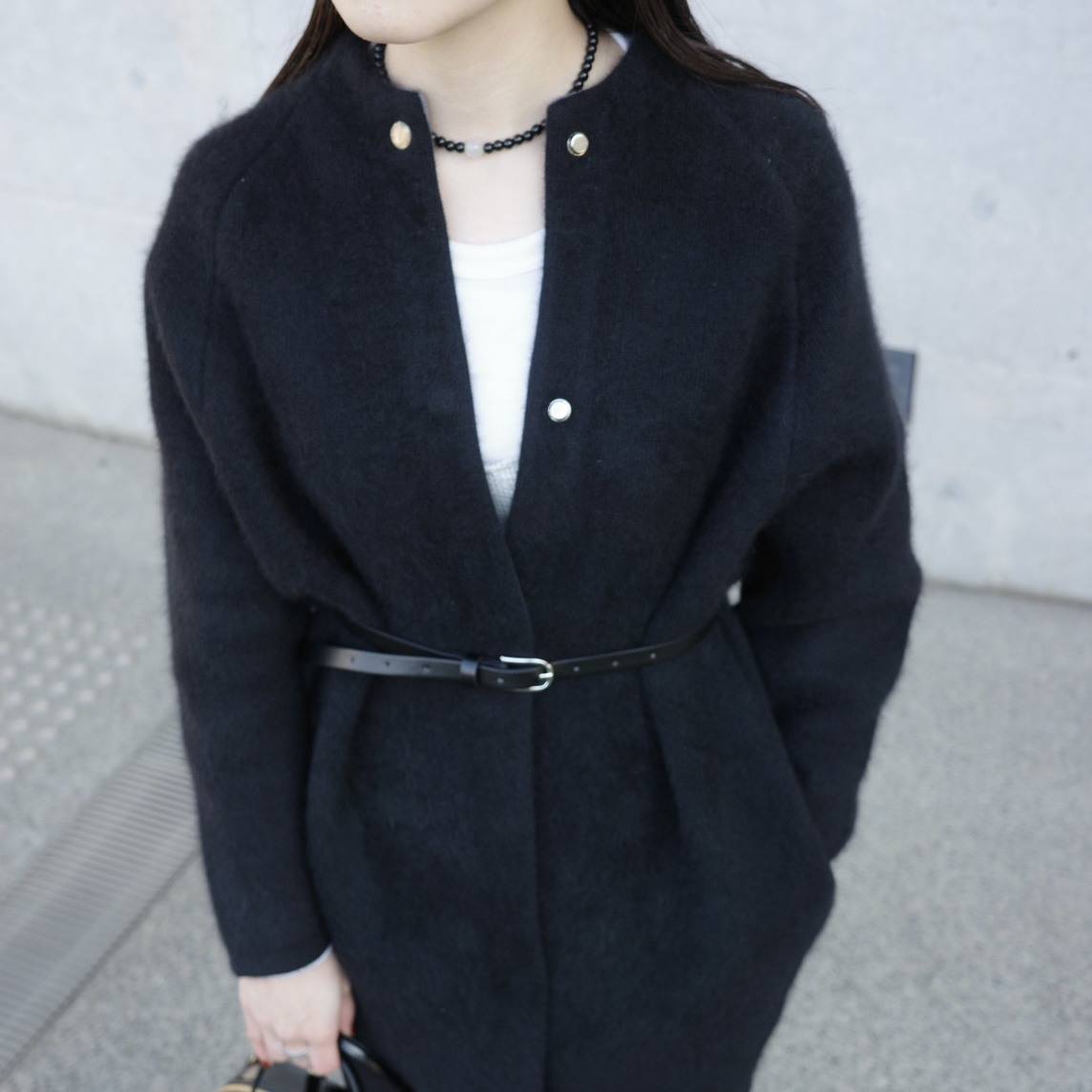 ラクーン混ならではの軽さと柔らかさが心地よく、見た目以上にストレスフリーな着用感が魅力です!