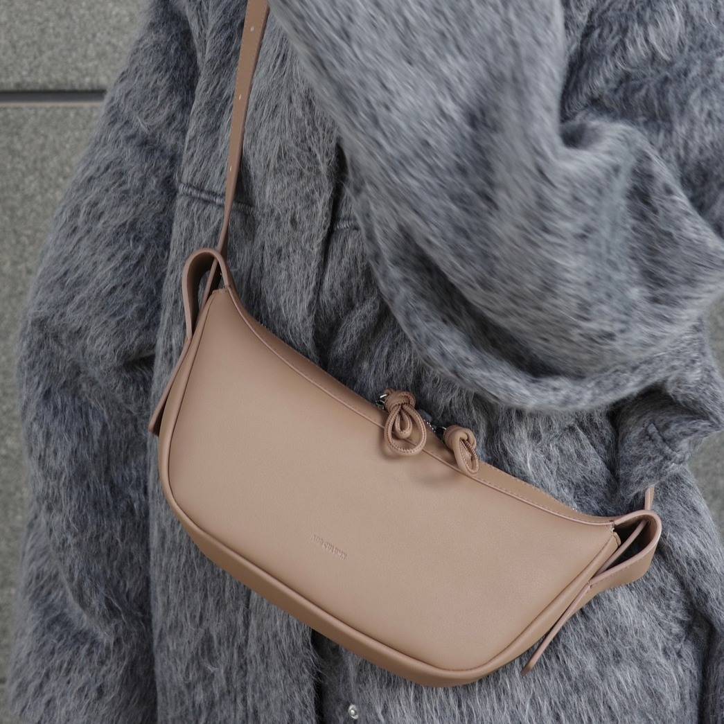 柔らかな曲線で描かれたフォルムと、構築的なハンドルデザインが印象的なミニバッグ✨