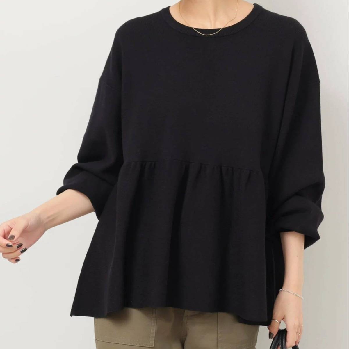 ペプラムシルエットのトップスは、お腹まわりはもちろん腰まわりも自然に隠せるので、体型カバーが叶います。