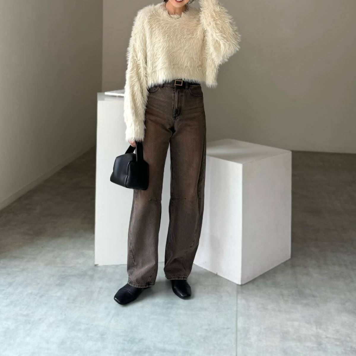 【1月編】いい女見えするニットコーデ⑤フェザーニット×デニムパンツ