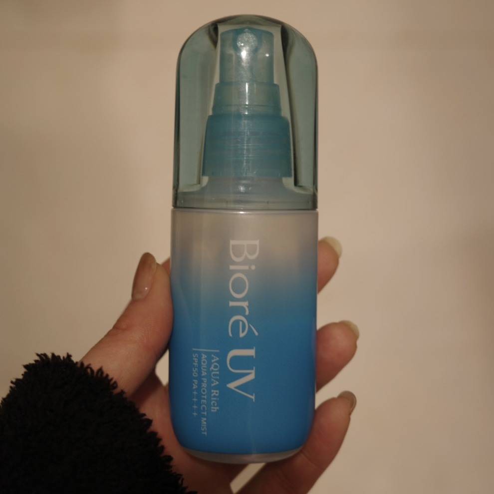 ビオレUV アクアリッチ アクアプロテクトミストは、シュッとひと吹きで均一に広がり、肌にすっとなじむ軽やかな使用感が魅力✨