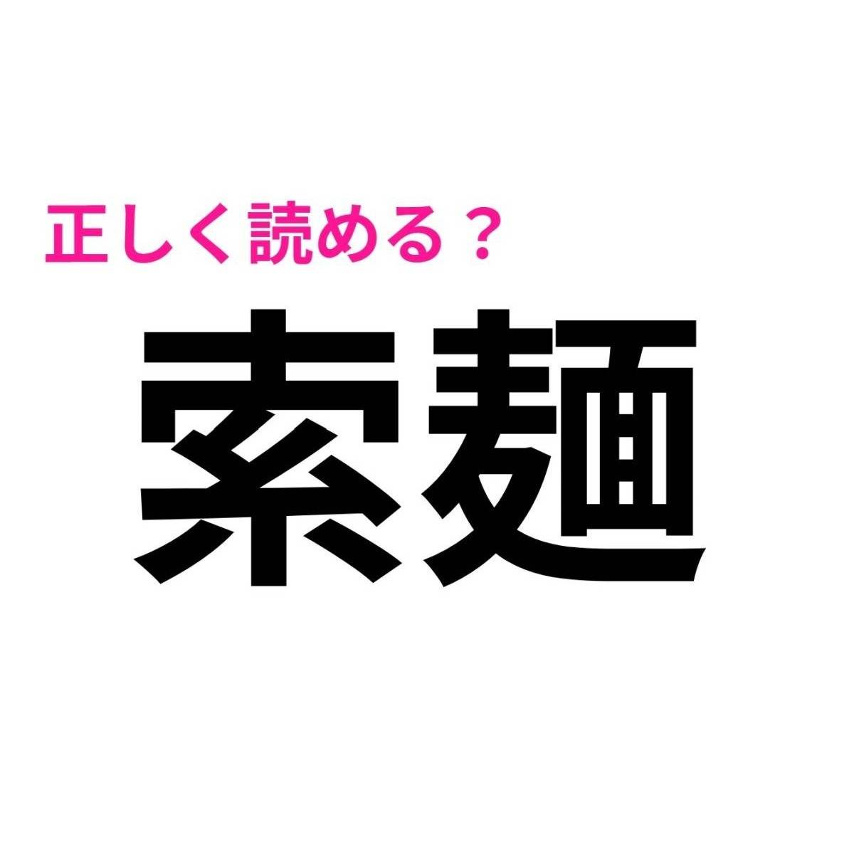 「索麺」は、「小麦粉をこねて細く引きのばし、乾かした食品」を指す言葉ですが、なんと読むでしょうか?