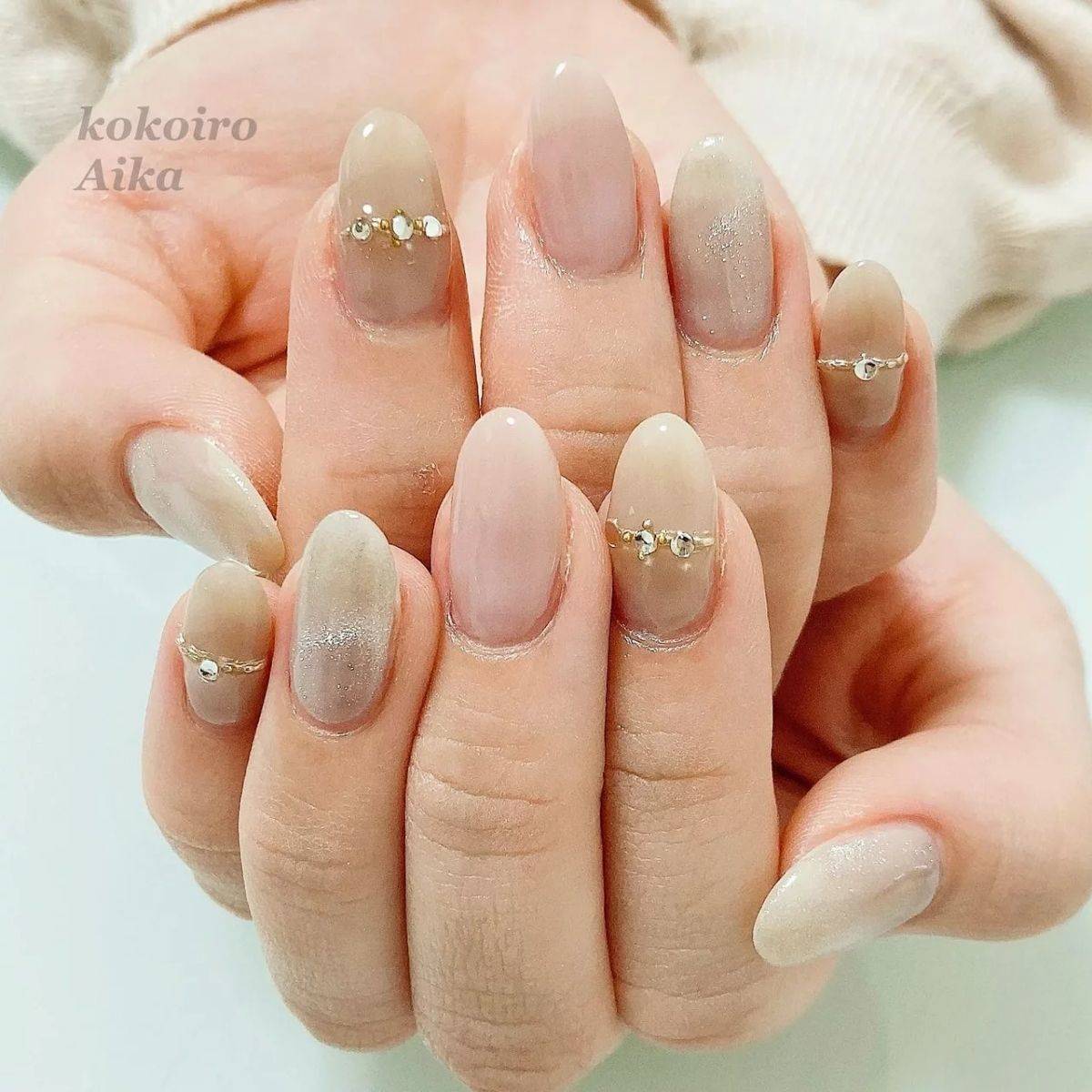 ミルキーカラーなら、暖色系のベージュやくすみピンクをチョイスすると◎