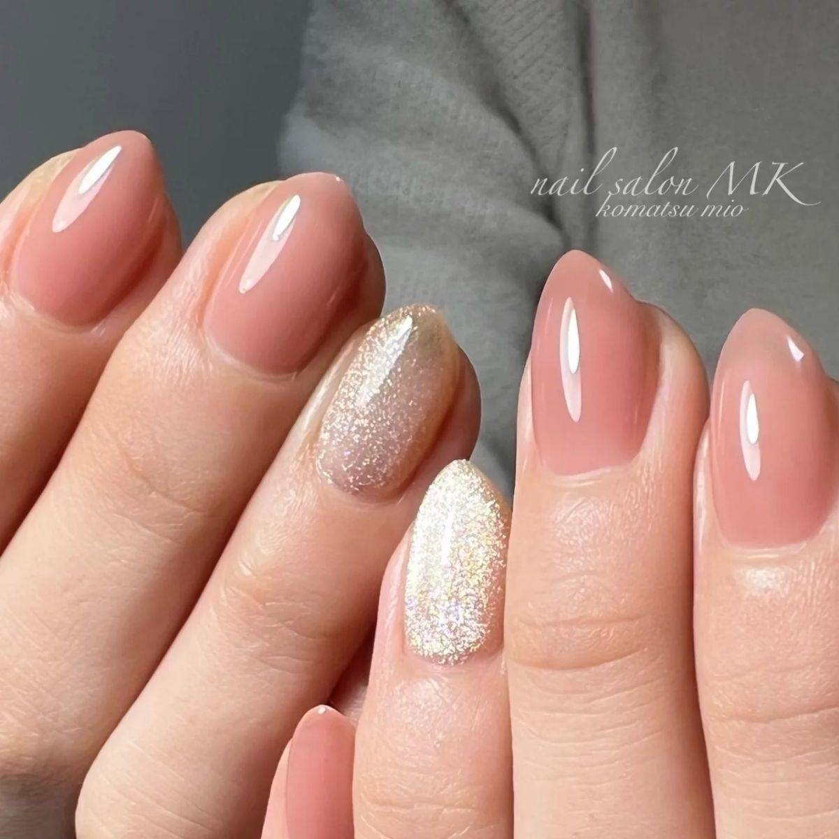 2026年冬におすすめなのが、ヌーディーカラーのベージュがメインのネイルです。