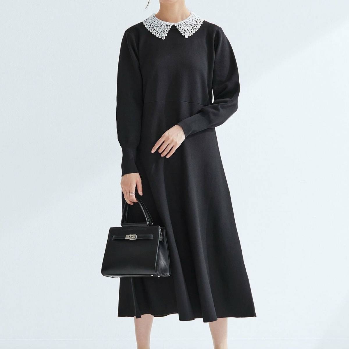 レース襟が上品な雰囲気のこちらのワンピースは、普段使いはもちろん、お呼ばれにもOK!