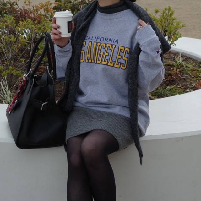 チャンピオンのグレーのロゴスウェットは、定番アイテムにほんのりモード感を添える名品スウェット🩶