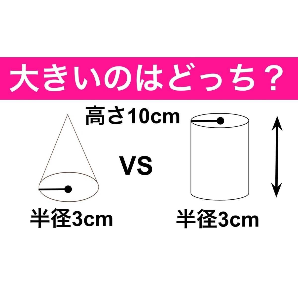 ちなみに、底面が同じ大きさの円すいと円柱のとき、円すいを3杯入れると円柱の体積になります。