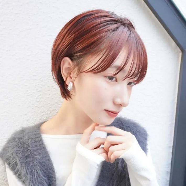 【2026年冬編】垢抜けて見える前髪ありショート⑤ボルドーカラーの耳掛けショート