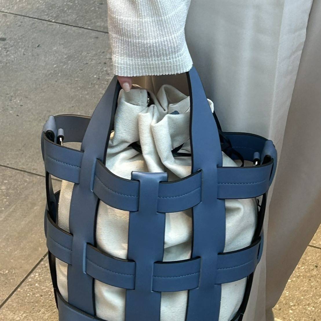 レザーの編み込みデザインが印象的なバスケットバッグは、クラフト感と上質さを兼ね備えた存在✨