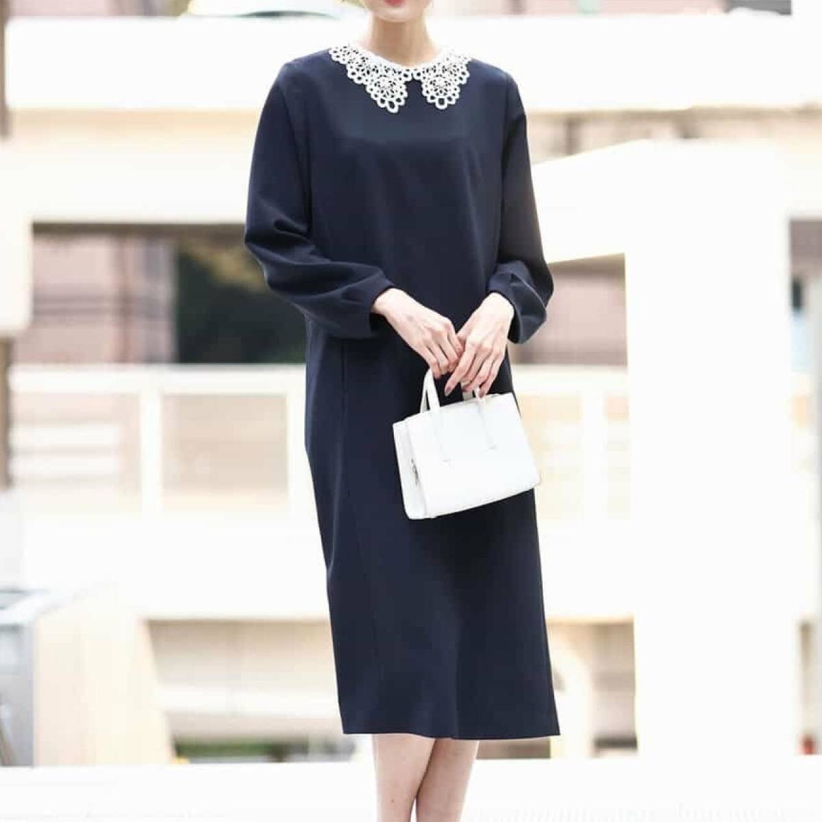 レースの襟がエレガントな印象の上品ワンピース。