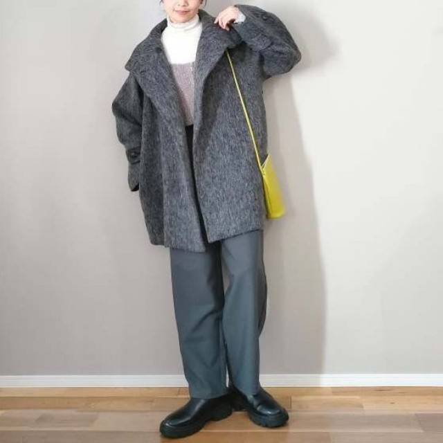 グレーのタートルネックニットとパンツのワントーンコーデはおしゃれですが、地味見えすると感じてしまった経験はありませんか?