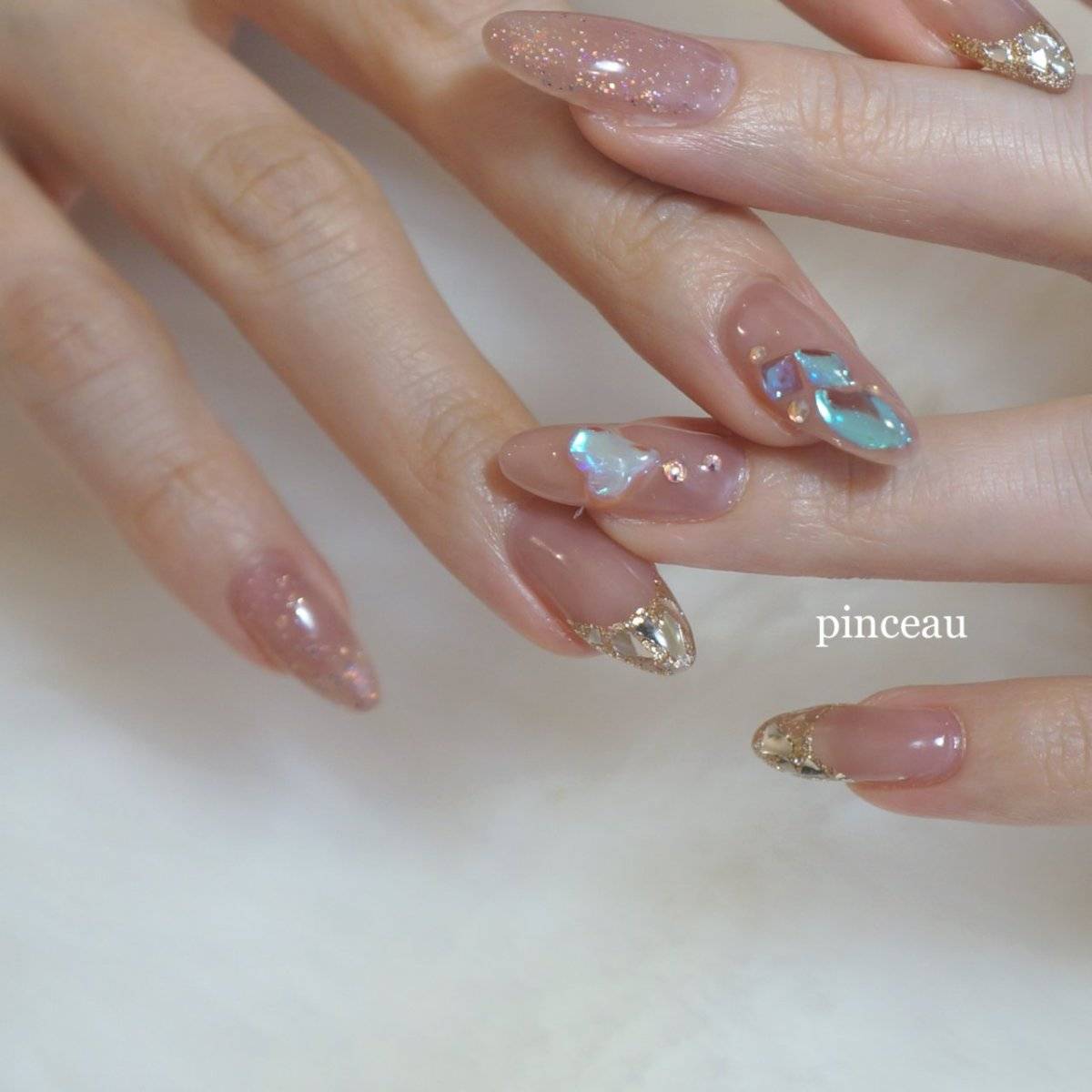 【晩冬編】おすすめのピンクブラウンネイル▶︎シアーネイルにビジューを飾る