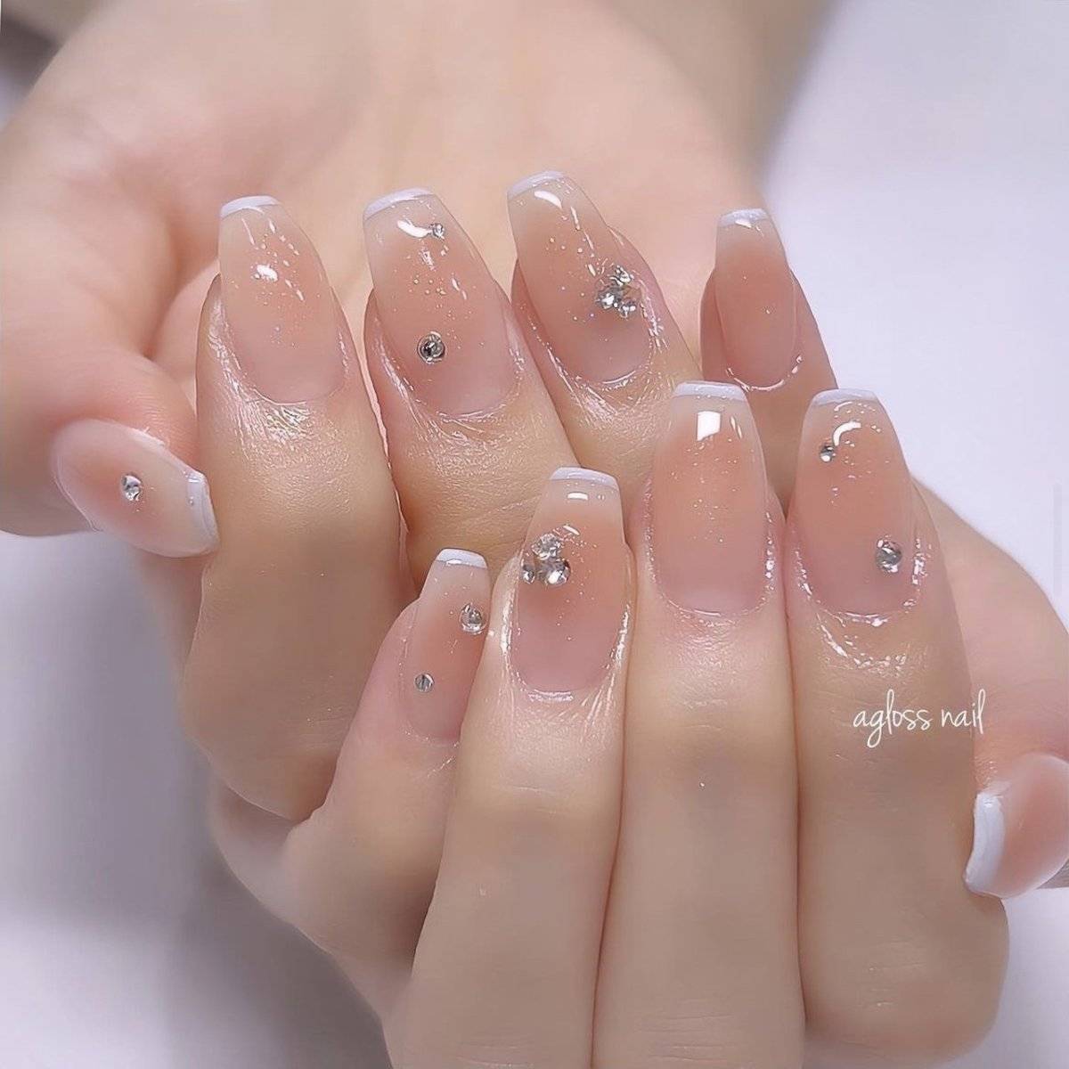 ツヤ感たっぷりの、ぷるんとしたグラデーションで手元をきれいに見せるのが今っぽくて人気♡