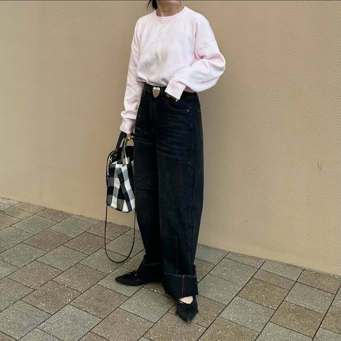 【真冬編】ダサ見えしないデニムパンツコーデ⑤ピンクのトップスを合わせる♡