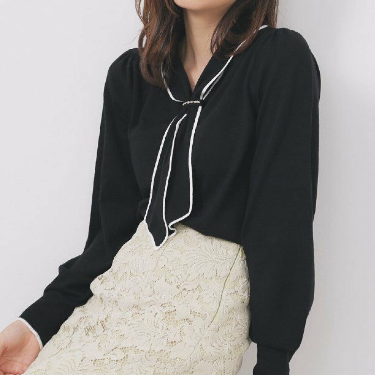 きれいめな印象のボウタイニットトップスは、大人女子におすすめのアイテム♪